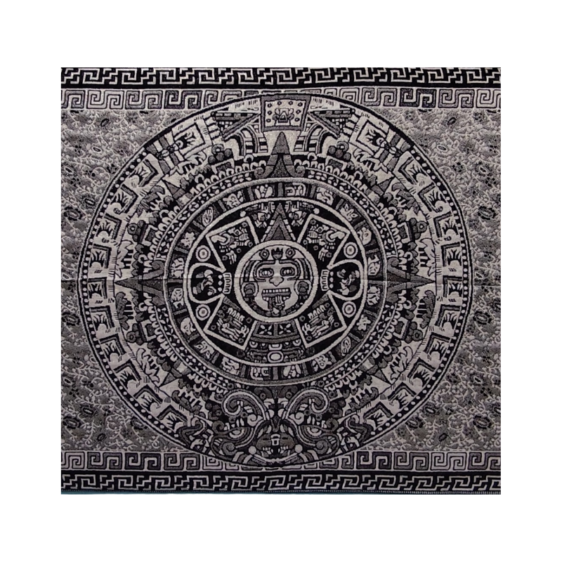 While most traditional rebozos with the Aztec Calendar design are found in vibrant colors or earth tones and black, the silver or Steel Gray version offers an elegant and sophisticated aesthetic. This color catches the light beautifully, making the intricate engraving of the Sun Stone stand out with a subtle and refined metallic sheen.