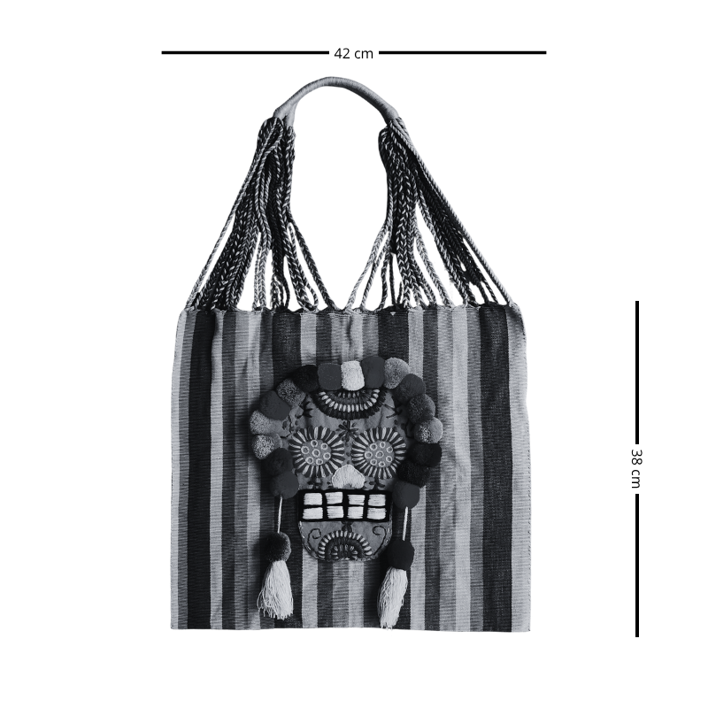 Celebrate the joyful and vibrant spirit of the Day of the Dead with this spectacular Colorful Calaca Bag. This piece pays homage to rich Mexican iconography, featuring the Sugar Skull design adorned with an explosion of bright and festive hues.